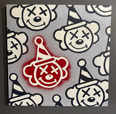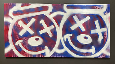 ![]() Duvaaaal - 48x36 acrylic on canvas - SOLD ![]() Bridge - 48x36 acrylic on canvas - $250 ![]() Overdose - 36x48 acrylic on canvas - $250 ![]() The American Way - 40x22 acrylic on canvas - $150 ![]() Consume - 36x48 acrylic on canvas - $250 ![]() Cotton Candy - 36x48 acrylic on canvas - $250 ![]() Money - 40x30 acrylic and diamond dust on canvas - $250 ![]() Outcast - 30x30 acrylic on canvas - $150 ![]() vote - 36x48 acrylic on board - $250 ![]() Pinata - 48x36 acrylic on canvas - $250 ![]() Fun Squad (Study for Pinata) - 20x16 acrylic on canvas paper - SOLD ![]() Start Sign - acrylic on recycled street sign - $250 ![]() Go Sign - acrylic on recycled street sign - $250 ![]() Gated Community - gold acrylic on recycled street sign - $250 ![]() Privilege - gold acrylic on recycled street sign - $250 ![]() All Lives Matter - acrylic on recycled street sign - $250 ![]() Speed Kills - acrylic on recycled street sign - $250 ![]() Peephole 1 - 8x8x3.5 wooden box - $150 Message inside reads "What's in There?" ![]() Peephole 2 - 8x8x3.5 wooden box - SOLD Message inside reads "Made You Look" ![]() Peephole 3 - 8x8x3.5 wooden box - $150 Message inside reads "Is There No Privacy Anymore?" ![]() Peephole 4 - 8x8x3.5 wooden box - $150 Message inside reads "This Joke is Inside" ![]() Flashy Green - 14x17 electroluminescent wire on wood - $150 simulates neon sign effect using battery powered wire, batteries included ![]() Flashy Pink - 14x17 electroluminescent wire on wood - $150 simulates neon sign effect using battery powered wire, batteries included ![]() Flashy Blue - 14x17 electroluminescent wire on wood - $150 simulates neon sign effect using battery powered wire, batteries included ![]() Flashy Orange - 14x17 electroluminescent wire on wood - $150 simulates neon sign effect using battery powered wire, batteries included ![]() Primary - 21x43 acrylic on canvas - $100 ![]() Bullets - 21x43 acrylic on canvas - $100 ![]() One Clown, Two Clown - 43x21 acrylic on canvas - $100 ![]() Spectrum - 56 x30 acrylic on cardboard - $100 ![]() Chaos - 22x40 acrylic on canvas - $100 ![]() Happy Apathy - 16x20 acrylic on canvas paper - $50 ![]() Fresh - 16x20 acrylic on canvas paper - $50 ![]() Stale - 16x20 acrylic on canvas paper - $50 ![]() Sprinkles - 16x20 candy sprinkles on canvas paper - $50 |